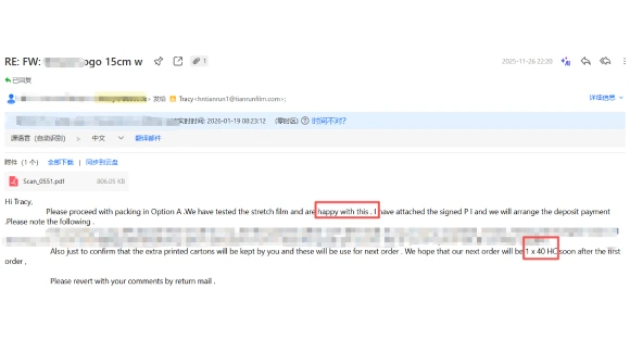 The display box was the deciding factor. Producing PE film is one capability; designing, sampling, and delivering retail display packaging around it is another — and most film factories only do one. When the first sample box arrived, the client’s purchasing manager said it looked more professional than comparable products from European suppliers at more than twice the price. That reaction had nothing to do with the film formula.